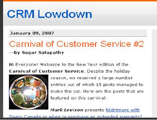 Vu pour vous aujourd’hui sur internet, une nouvelle communauté créée il y a un mois : le carnaval du service client, hebergé par CRM lowdown. C’est un nouveau florilège (parmi 961 aujourd’hui) de billets issus de blogs créé par « Blog carnival », on y découvre une sélection d’aventures croustillantes arrivées à des clients dans le domaine de la relation client. Bien sûr toutes les anecdotes ne se valent pas, mais on y surfe avec plaisir, sans compter que lire en anglais ne peut pas nous faire de mal à nous autres surfers français…