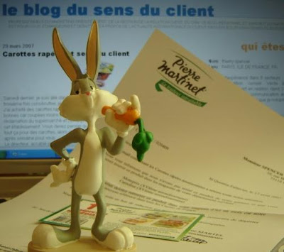 Vous avez peut-être lu mon billet sur les carottes rapées des supermarchés Casino en MDD (marque de distributeur) et ma grande frustration de ne plus trouver mes carottes rapées Pierre Martinet. Je vous invite à lire ce billet. Dans ce premier épisode, je narrais mes aventures digne d’un épisode de Bugs Bunny. Ne croyez pas que j’ai laissé tomber mon combat pour les carottes rapées, bien au contraire, j’ai écrit à la marque Pierre Martinet le 23 mars par mail pour lui faire part de ma déception quant à la disparition des carottes de sa marque chez Casino, au profit de la MDD. Le 30 mars, le service consommateur me demandait mon adresse physique pour m’envoyer un courrier de réponse. J’ai ce courrier daté du 17 avril entre les mains (voir la photo ci-dessus).