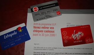 Mais ma frustration de client vient du fait qu’à aucun moment sur le questionnaire, on ne me demande si j’avais une carte VIP précedemment, ce qui signifie qu’on repart à zéro. Tant d’années de fidélité, tant d’euros dépensés par le client et par l’enseigne pour fidéliser, tant d’efforts, de papier, de plastique, de base de données qui partent à la poubelle ! Quel dommage. A moins qu’il y ait un rapprochement des anciens fichiers et du nouveau et que je recoive une belle lettre d’amour de Virgin (en l’occurrence un mail) pour témoigner de mon attachement. Je pense que je rêve.