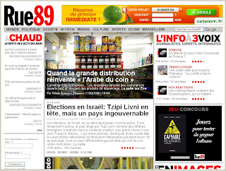 Voilà mon « quart d’heure de célébrité » en ligne qui vient d’arriver aujourd’hui avec la publication en page d’accueil du site d’information rue89 (voir capture d’écran ci-dessus) de mon billet « quand la grande distribution réinvente l’arabe du coin ».