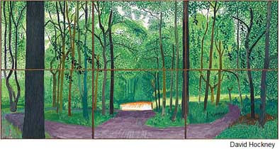 Ce qui me fait dire que nous sommes à l’heure du choix, et comme le suggère le tableau de David Hockney en illustration de ce billet, le chemin qui mène tout droit est baigné de soleil.