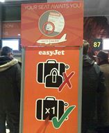De la même manière, à l’enregistrement j’entendais à plusieurs reprises des clients s’époumoner : « comment ça, un seul bagage en cabine : mais mon sac à main n’est pas un bagage ! », après avoir passé 30 minutes devant ce panneau explicatif (photo ci-dessus).