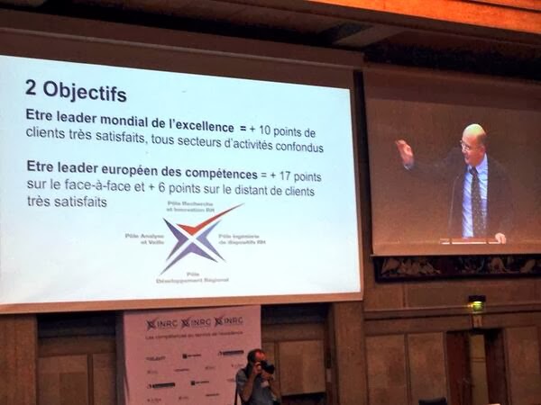 - Quatrième raison : on sentait dans le discours final d’Eric Lestanguet (cf la photo éloquente) la volonté de s’engager et de faire correspondre des chiffres, des objectifs aux beaux discours. Ainsi, l’INRC se fixe deux objectifs pour « atteindre l’excellence dans tous les domaines de la relation client ». Certes, il s’agit d’objectifs à 10 ans (rendez-vous sur mon blog en 2024), mais ils ont le mérite de poser le cadre des actions.