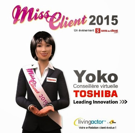 Yoko, Miss Client 2015 est la conseillère virtuelle de Toshiba France depuis Octobre 2013 et a été déployée en Angleterre, en Irlande et en Allemagne. Selon Cantoche (les concepteurs de cet agent), elle gère près de 2.000 conversations par jour et « décrypte les demandes clients et accélère les procédures basiques, en orientant vers les bonnes pages du site ou en répondant aux questions techniques. Ses réponses personnalisées grâce au numéro de série de l’appareil du visiteur font gagner un temps précieux aux clients et aux conseillers, qui traitent des dossiers souvent déjà qualifiés. ». Comme certains agents, elle propose lorsque nécessaire un transfert vers un conseiller humain pour poursuivre la conversation selon un canal au choix (chat, téléphone ou mail).
